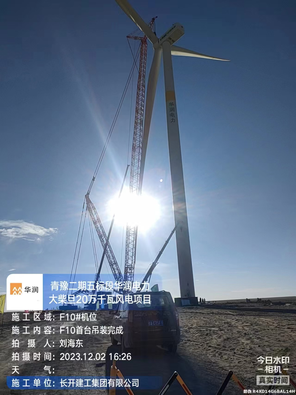 项目名称:海西基地青豫直流二期外送项目华润风电(大柴旦)有限公司五标段 20 万千瓦风电项目 风机安装 I 标段